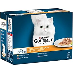 Gourmet Perle Mini Filets Kattenvoer, Natvoer met Kalkoen, Tonijn, Eend of Lam in Saus – 12x85g – doos van 4 (48…