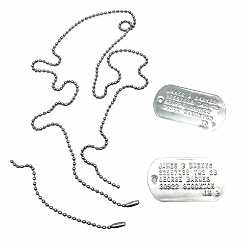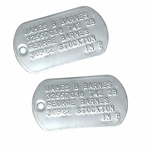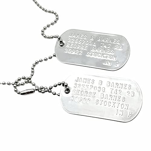 Een fantastische manier om je James Barnes kostuum compleet te maken! Deze hondentags zijn onze eigen weergave van een nauwkeurige reproducties van Steven Rogers ‘rechterhand man James “Bucky” Barnes zoals te zien in de films.
