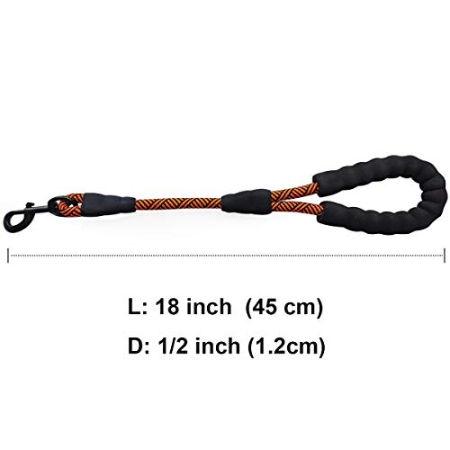 Specification: Mycicy korte hond Leash- 18 Inch Touw Traffic Leash met gewatteerde handvat- 1/2″ Sterke Nylon Tab Leash voor middelgrote grote honden Training Wandelen, 1/2″(D) x 18″(L), Zwart (1/2″(D) x 18″(L), oranje)