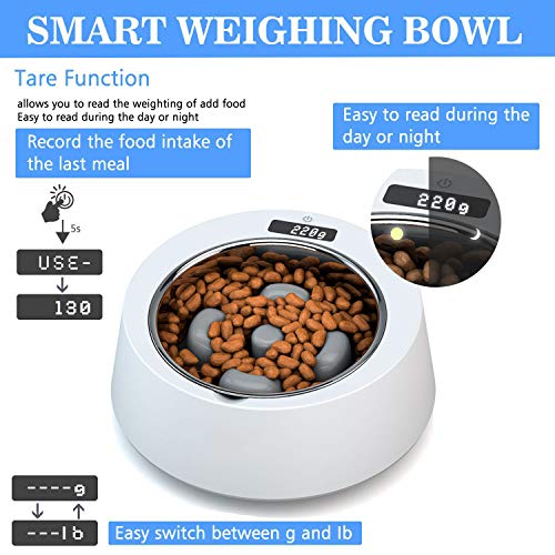 [Multifunctionele elektronische weegschaal]: ingebouwde digitale weegschaal met LCD-scherm kan de voedselinname van huisdieren nauwkeurig weergeven en een gezond dieet garanderen. Het is noodzakelijk voor elk gezondheidsgeweten Eigenaars van huisdieren
