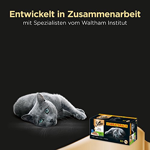 Inhoud: 32 x 85 g Sheba saus-laver/eend, kip, zalm en tonijn in saus/diervoeding voor huiskatten/geschikt voor junior vanaf 12 maanden tot senior