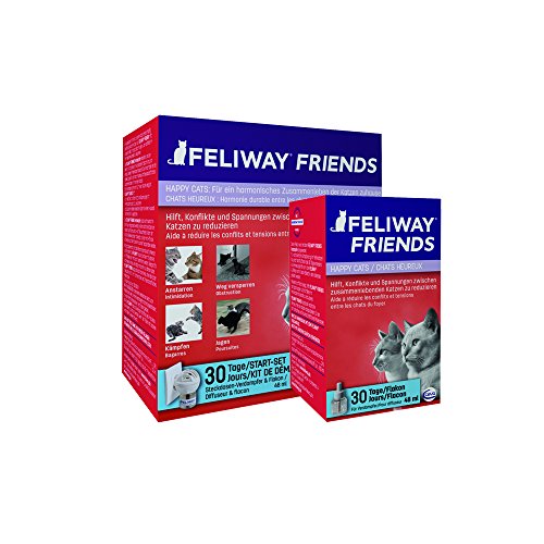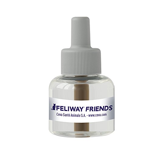 Happy Cats: voor een harmonieus samenleven van de katten thuis. Gebruik de Feliway Friends navulfles en zorg voor nog eens 30 dagen harmonie tussen je katten. Deze flacon wordt gebruikt met de Feliway Friends-verdamper. Voor continue ontspanning in het meerkattenhuishouden de navulflacon om de 30 dagen vernieuwen. Als herinneringshulp kan de Feliway sticker van het flacon-etiket in de kalender worden geplakt. Feliway Friends helpt om de frequentie en intensiteit van spanningen in het meerkattenhuishouden te verminderen – het samenleven tussen katten in een huishouden harmonischer te maken. Het belangrijkste van de Feliway Friends navulflacon in één overzicht: – helpt conflicten en spanningen tussen samenlevende katten te verminderen – 30 dagen flacon – alleen voor gebruik met de Feliway. Y verdamper – Ontwikkeld en aanbevolen door dierenartsen, wetenschappelijk bewezen, niet-medicijnelijke hulp voor meer harmonie in het meerkattenhuishouden