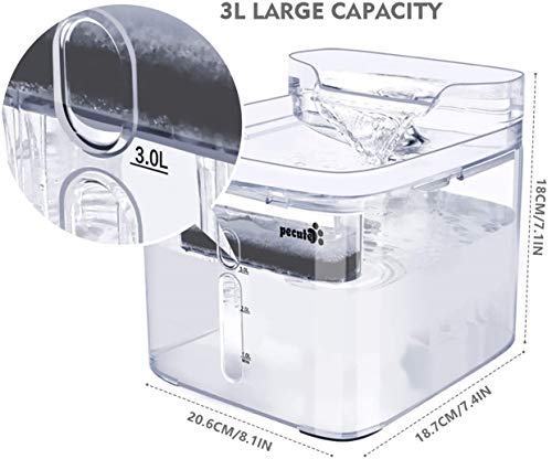 🐾 【Volledig transparant ontwerp】: Pecute 2019 Nieuwste kattenfontein, gemaakt van hoogwaardig PS-materiaal, BPA-vrij, niet giftig. Uniek ogende, Aantrekkelijk en grappig voor huisdieren, moedigen aan om meer water te drinken, Terwijl het ook gemakkelijker voor u is om water toe te voegen, het filter te vervangen, de fontein op tijd in een oogopslag schoon te maken.