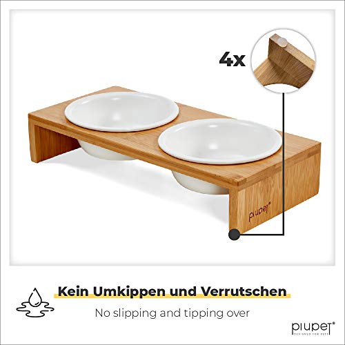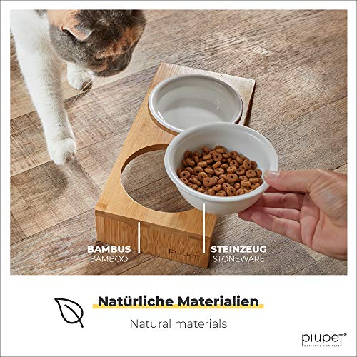 PiuPet® Voerbak voor Katten en kleine Honden – Voerbak voor Katten met stijlvol bamboe frame – Verhoogd…