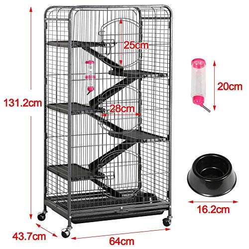 Specification: Yaheetech Kooi voor knaagdieren, van metaal, hamsterkooi, kooi voor kleine dieren, kooi met 3 voordeuren, zwart