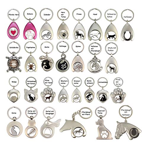 NETPROSHOP Sleutelhanger Tag Dierlijke Beeldje met Token voor Winkelwagentjes Metalen Keuze