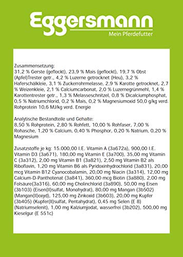 Specification: Eggersmann Frucht Müsli – Eiwitarme paardenmuesli – Bijvoeder met een hoog gehalte aan vruchtendroesem – 20 kg