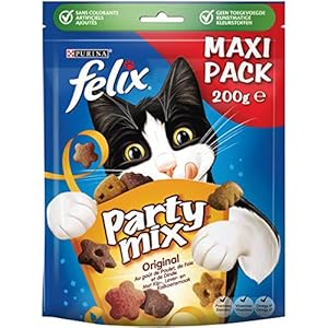 Felix Party Mix Original Kattensnacks met Kip-, Lever- en Kalkoensmaak, doos van 5 (5 x 200g)
