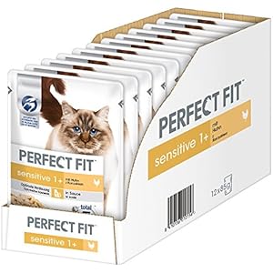 Perfect Fit Sensitive 1+ Katten natvoer met kip in saus, 12 sachets, 12x85g – Premium katten natvoer, voor gevoelige…