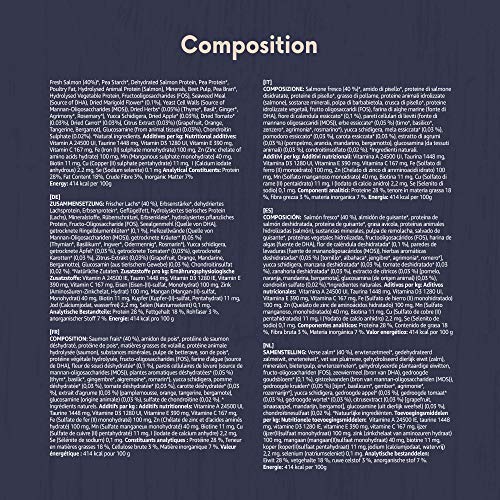 Hypoallergeen: bevat één dierlijke eiwitbron (zalm). Zonder toevoeging van tarwe, maïs, soja, ei, lactose en gluten