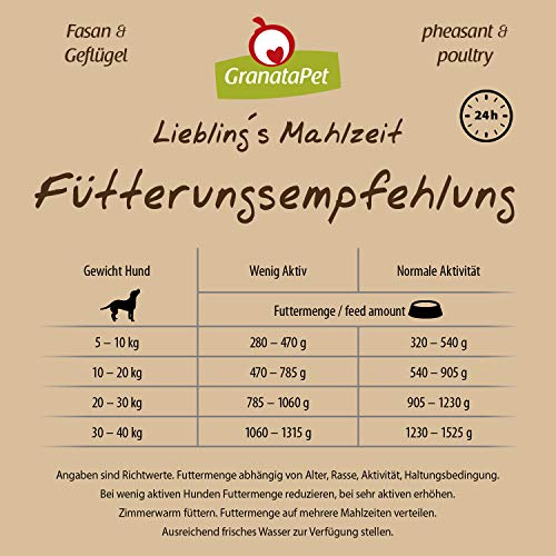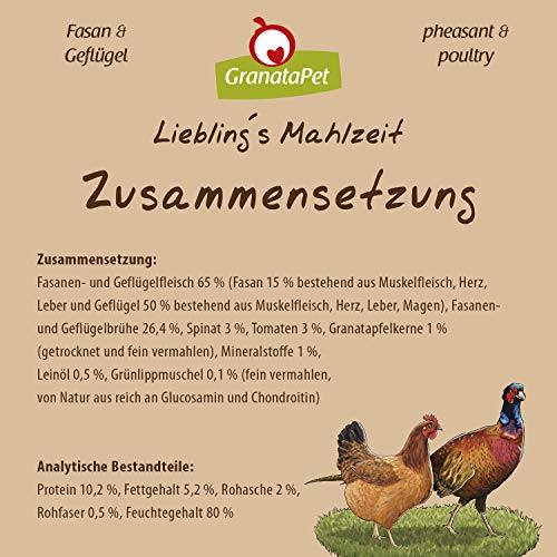 Specification: GranataPet Liebling’s Mahlzeit fazant en gevogelte, natte hondenvoer, voedsel voor volwassen honden zonder granen zonder…