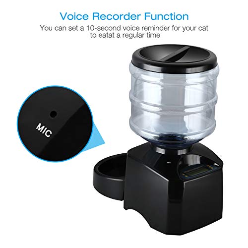 【Grote capaciteit van 5,5 l】: met deze grote capaciteit kan de voedermachine droogvoer ca. 7-12 dagen bewaren (afhankelijk van het aantal huisdieren en het aantal voederopname). Het maakt het vaak invoeren van voedsel overbodig en voorkomt de zorgen dat je huisdieren op reis of op het werk geen voedsel hebben.