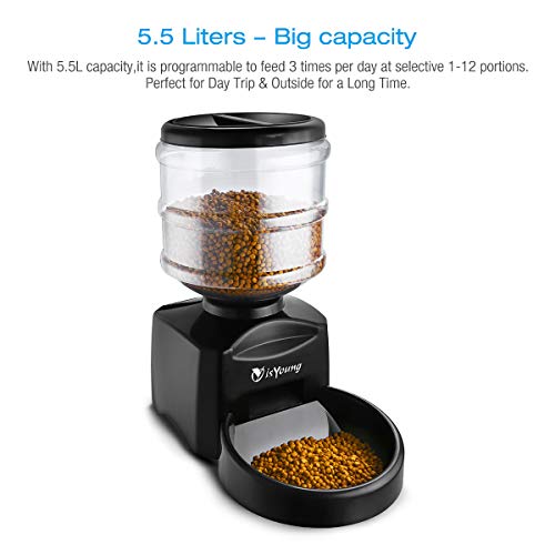 Specification: isYoung Automatische voederdispenser met timer voor katten en honden, programmeerbare voederautomaat met LCD-scherm en…