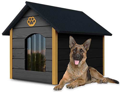 Novamat Hondenhuis van hout – gezellig en stijlvol huis voor je hond met geïsoleerde wanden – waterdicht – maat XL (XL…