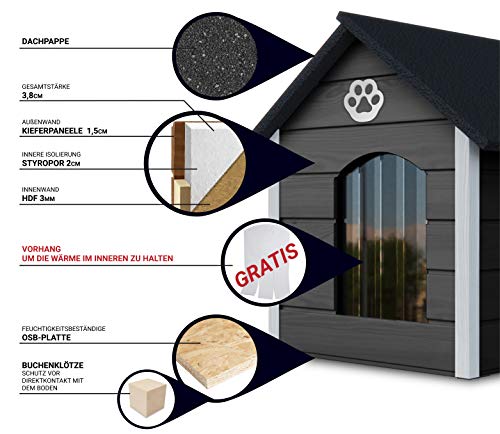 Specification: Novamat Hondenhuis van hout – gezellig en stijlvol huis voor je hond met geïsoleerde wanden – waterdicht – maat XL (XL…