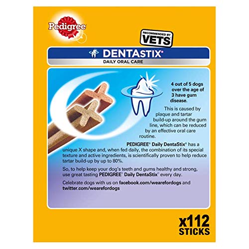 Inhoud: 1 x 112 Pedigree DentaStix dagelijkse tandverzorging voor grote honden / de eenvoudig lekkere en eenvoudige tandreiniging voor de hond / extra voeder voor honden vanaf 4 maanden
