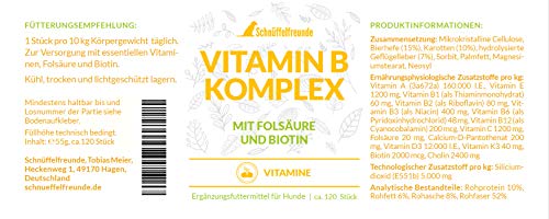 Specification: Schnüffelfreunde Vitamine B-Complex supplement voor honden I Met foliumzuur en biotine I Vitamine B1, B2, B3, B6 en B12…