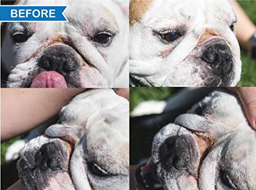 Perfect voor alle honden, met name met rimpels. Ideaal voor Engelse bulldoggen, Franse bulldogen, olde english bulldogen, mepse, American Bulldogs, shar-peis, mastiffs, bassethounds, boxers, pitbulls of alle honden met een gevoelige huid. Onze homoopathische hondenhuidbehandeling reinigt geïrriteerde of infecteerde huidrimpels.