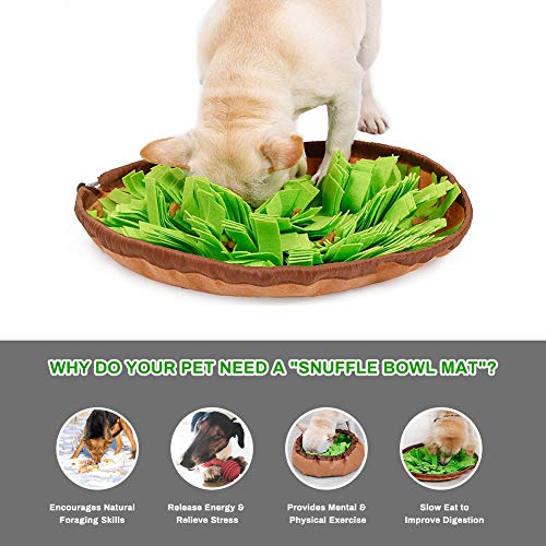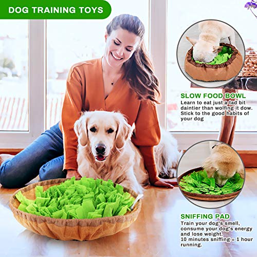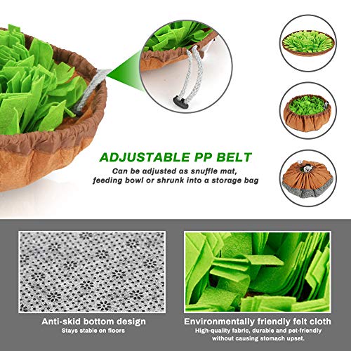 Onze hondensnuffelmat is voornamelijk gemaakt van hoogwaardig viltdoek, met antislip onderkant, het kan uw huisdieren goed trainen om alles te bijten en te eten wat ze in de kom vinden. Gecombineerde voerbak voor langzaam voer met snuifkussen, het kan uw huisdieren verzadigen met hun snuffelbehoeften en hun druk verminderen, gemakkelijk schoon te maken en uit te voeren, een aanschaf waard voor uw huisdieren!