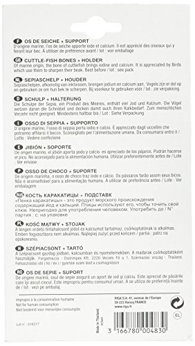 RIGA – school + houder voor vogels. De school, een product van de zee, bevat veel jod en calcium. De vogels weteren eraan de snages en dekken daarmee ook hun kalkbehoefte. Niet geschikt voor menselijke consumptie.