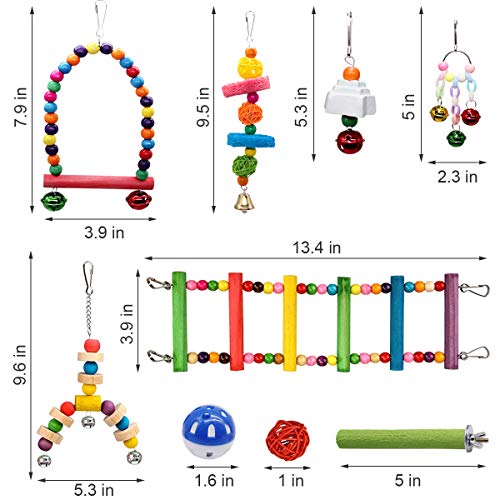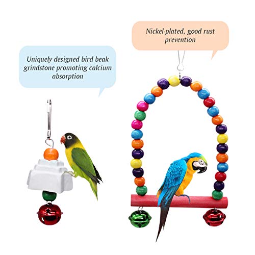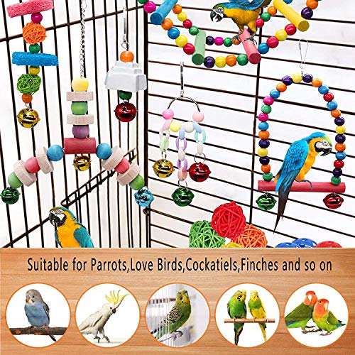 【14 Pakket van vogelpapegaai speelgoed】14 stuks van verschillende soorten vogels kauwen opknoping schommel speelgoed cam voldoen aan vogel verschillende behoeften voor meer plezier; Swing Climbing Ladders Sepak Takraw Bell glazuur stick; Briljante kleuren en aangenaam geluid zorgen voor veel plezier voor uw huisdier vogel