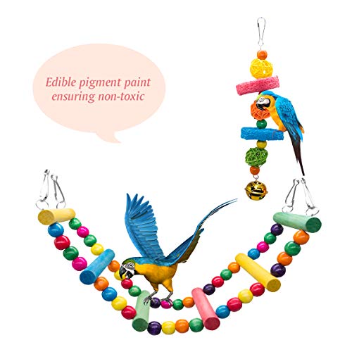 【Natuurhout en veilig te bemannen】 De hangschommel is gemaakt van 100% food-grade pigmenten en natuurlijk niet-toxisch hout, dat veilig te schroeven is; breng plezier aan de vogels van je huisdier en geef ze ook van calcium