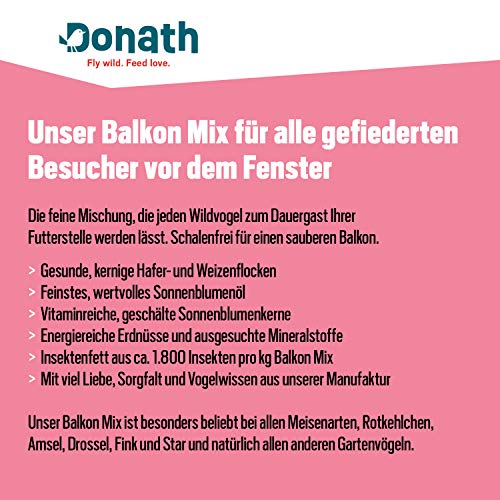 Donath Balkonmix – gepelde mix voor een proper terras – waardevol vogelvoer voor alle seizoenen – geproduceerd in Zuid…